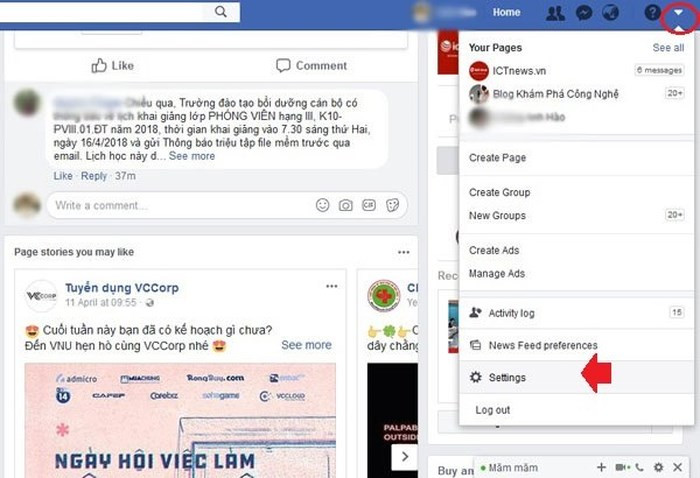 Bên cạnh công cụ kiểm tra nhanh thì chúng ta cũng có thể điều chỉnh mức độ riêng tư cá nhân trong phần Settings, hãy bấm mũi tên nhỏ góc trên và chọn Settings.