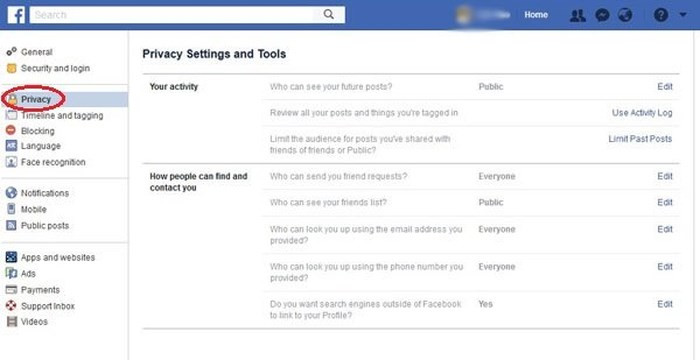 Bên cạnh công cụ kiểm tra nhanh thì chúng ta cũng có thể điều chỉnh mức độ riêng tư cá nhân trong phần Settings => Privacy của Facebook.