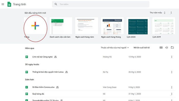 Để tạo mới một bảng tính hãy bấm vào dấu cộng.