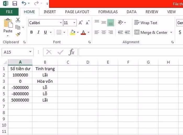 Như trên có nghĩa là nếu mệnh đề điều kiện 1 sai thì Excel sẽ xét tiếp đến mệnh đề điều kiện 2. Ví dụ cho trường hợp sử dụng hàm IF có nhiều điều kiện có thể là khi chúng ta có bảng kê số tiền cân đối thu chi từng ngày ở cột A và muốn cột B tự động xếp loại xem ngày đó lỗ hay lãi.