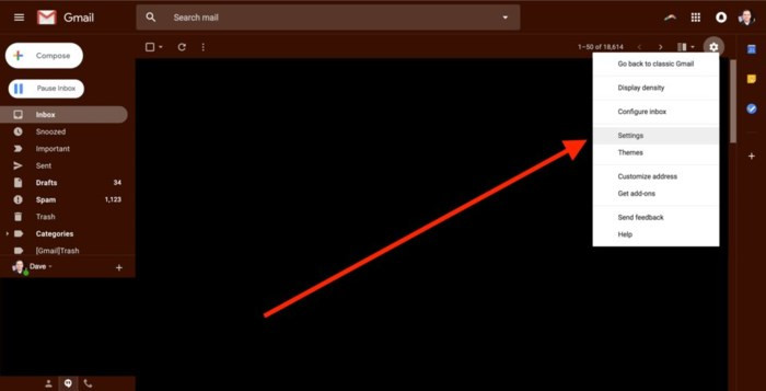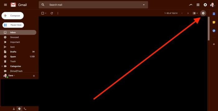 Bây giờ bạn đang ở trong Gmail, hãy truy cập Settings, kích vào biểu tượng bánh răng nằm ở góc trên cùng bên phải của màn hình.