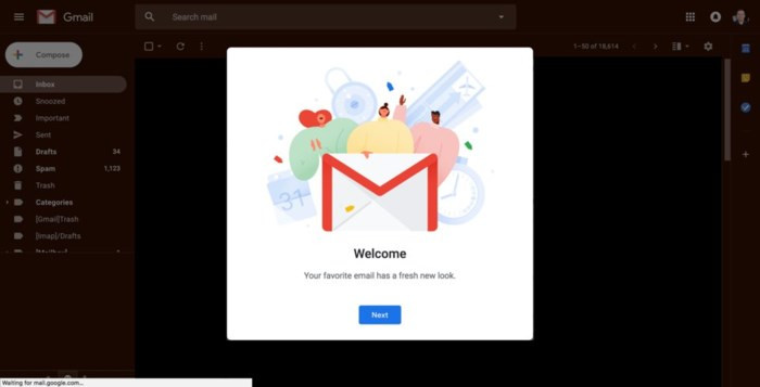 Bạn sẽ nhận được một lời chào đón dễ thương cho phép bạn biết là đã kích hoạt thiết kế Gmail mới.