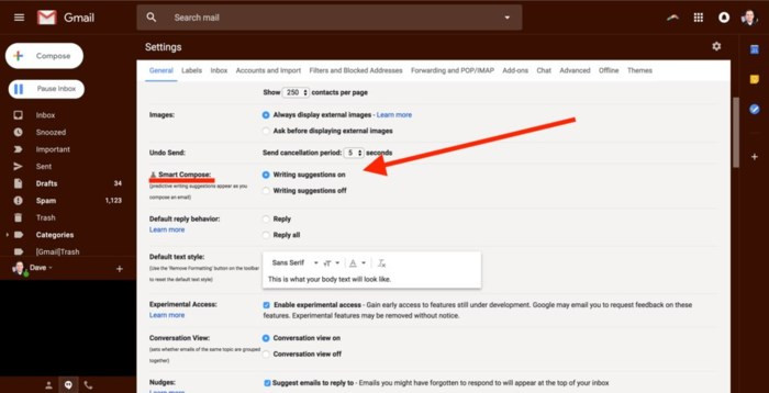 Bây giờ, Gmail của bạn mở những trải nghiệm, hãy quay lại phần Settings. Bạn sẽ nhìn thấy tùy chọn mới có tên “Smart Compose”. Đảm bảo các đề xuất viết đã được bật.