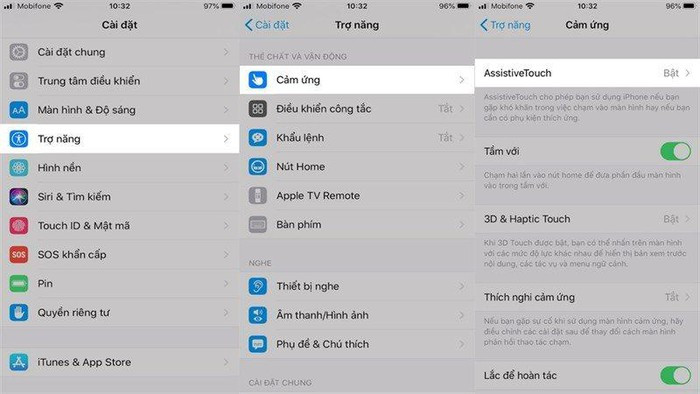 Để khắc phục, bạn vào Cài đặt > Trợ năng > Cảm ứng > AssistiveTouch.