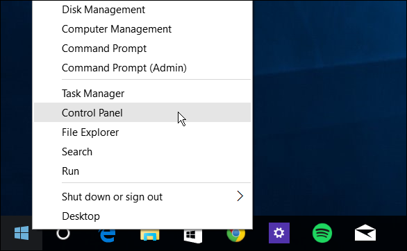 Để bắt đầu, bạn nhấp chuột phải lên nút Start để mở trình đơn truy cập nhanh và chọn Control Panel.