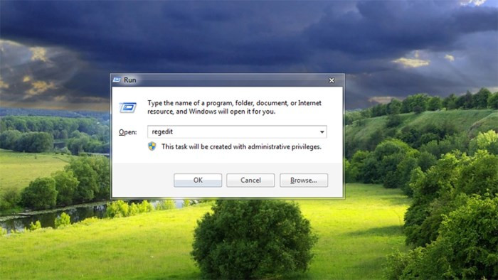Bước 1: Trên máy tính Windows, nhấn tổ hợp phím Windows +R > nhập vào lệnh "regedit" và nhấn OK.