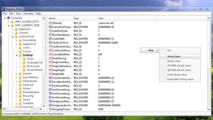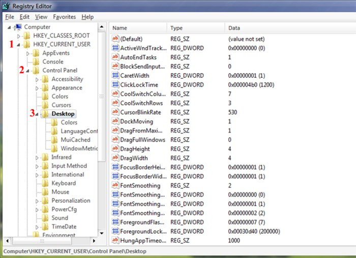HKEY_CURRENT_USER \ Control Panel \ Desktop.