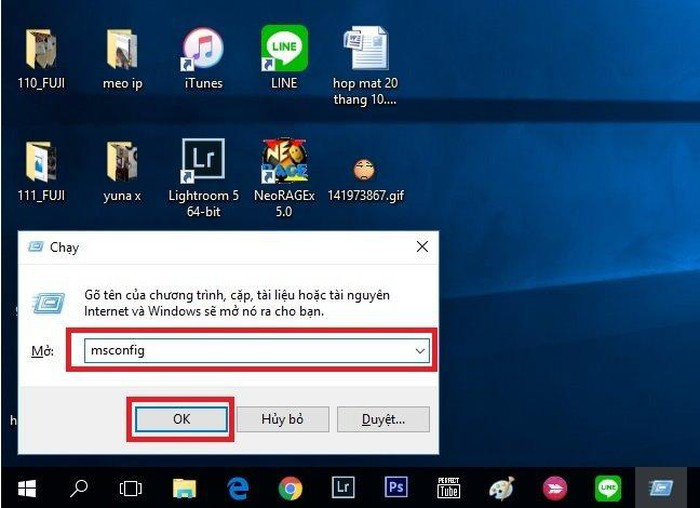 Tại bất kì của sổ nào trên máy tính, các bạn bấm tổ hợp phím Windows + R. Tại cửa sổ mới hiện ra, các bạn gõ vào "Msconfig" và nhấn Enter.