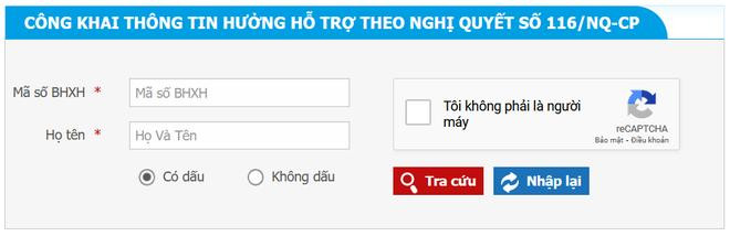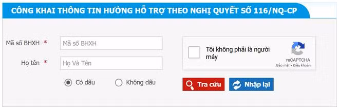 Sau khi có được mã số Bảo hiểm Xã hội, bạn có thể truy cập vào trang web tra cứu thông tin hưởng hỗ trợ theo Nghị quyết 116/NQ-CP tại đây.