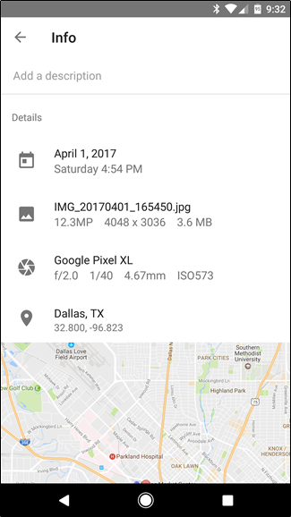 Theo Howtogeeks, để xem những dữ liệu EXIF cơ bản, chúng ta sẽ dùng Google Photos có mặt trên hầu hết các thiết bị Android hiện nay.
