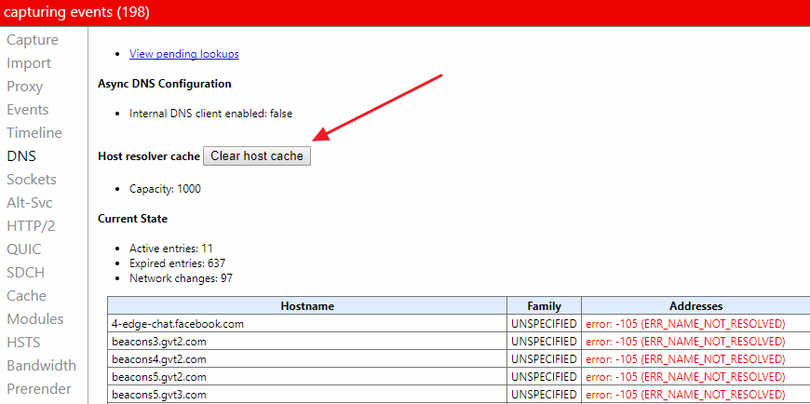 Tại đây, bạn nhấn nút Clear host cache. Thao tác này sẽ xóa danh sách các trang web bạn đã truy cập.