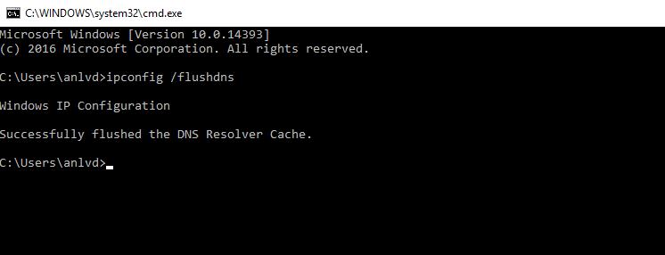 Nhấn tổ hợp phím Windows + R để mở hộp thoại Run, sau đó gõ ipconfig /flushdns và nhấn Enter.