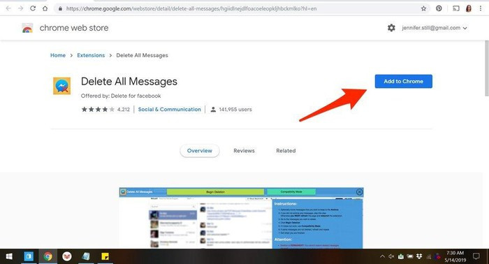 2. Mở Chrome, tải tiện ích Delete All Messages tại đây. Quá trình cài đặt khá dễ, chỉ cần làm theo hướng dẫn.