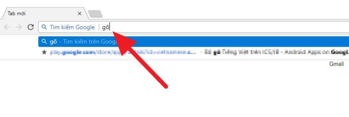 Thông thường, khi cần tìm kiếm gì đó, bạn sẽ nhập từ khóa trực tiếp lên thanh địa chỉ. Tuy nhiên, với cách này, bạn sẽ gặp lỗi gõ tiếng Việt như đã nói ở trên. Để khắc phục, trước khi nhập từ khóa tìm kiếm, bạn chỉ cần nhấn phím Ctrl + K hoặc Ctrl + E để mở công cụ Google Search (Tìm kiếm Google), sau đó nhập từ khóa và nhấn Enter.