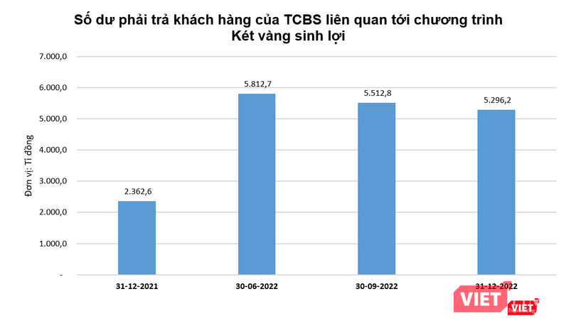 Trở lại với TCBS, tính đến thời điểm ngày 31/12/2022, số dư phải trả khách hàng cho hoạt động giao dịch chứng khoán được áp dụng chương trình ‘Két vàng sinh lợi’ ở công ty chứng khoán này đã lên tới 5.296,2 tỉ đồng, tăng 2.933,6 tỉ đồng so với đầu năm.