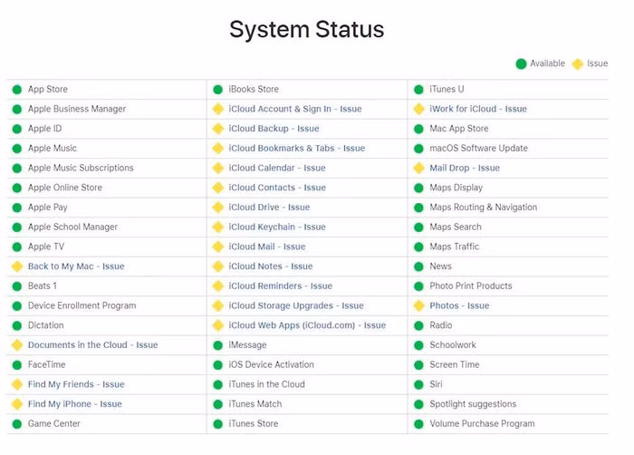 Cập nhật tình trạng các dịch vụ của Apple