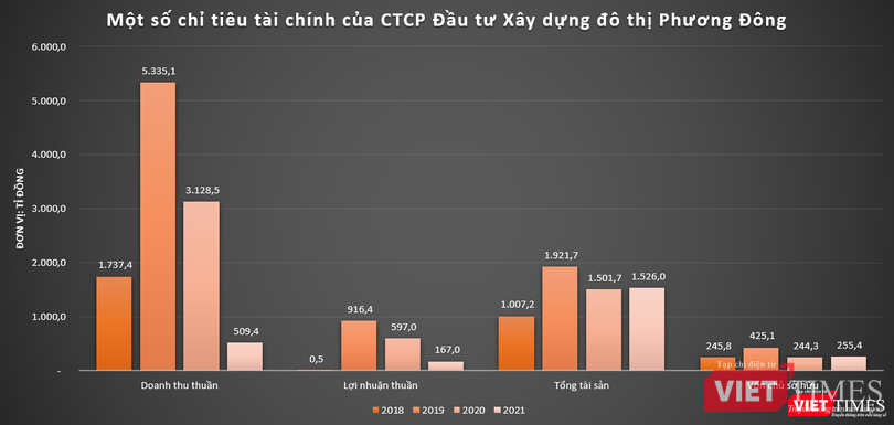 Đến năm 2021, Phương Đông chỉ còn ghi nhận doanh thu thuần và lợi nhuận sau thuế lần lượt đạt 509 tỉ đồng và 167 tỉ đồng.