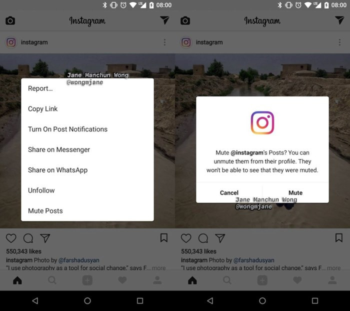 Bạn đã bao giờ không muốn nhìn thấy một hay vài bức ảnh từ một người dùng nào đó trong danh sách follow của mình, nhưng lại không có cách nào để ẩn bức ảnh đó đi ngoại trừ biện pháp mạnh tay nhất là unfollow người bạn đó? Giờ đây với chức năng Mute, người dùng có thể thoải mái ẩn tất cả các bài đăng từ một người trong danh sách theo dõi mà không làm họ phật lòng khi phải bỏ theo dõi hoàn toàn. Đây là tính năng đã có từ lâu trên Facebook và có lẽ là tính năng thiết yếu nhất mà Instagram nên cập nhật càng sớm càng tốt.