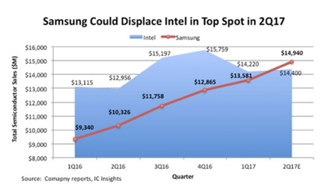 “Nếu giá của chip nhớ tiếp tục tăng hoặc ổn định trong quý hai và duy trì trong suốt năm 2017, Samsung sẽ chiếm lĩnh vị trí hàng đầu và thay thế Intel vốn thống trị bảng xếp hạng từ năm 1993”, Bill McClean, Chủ tịch công ty nghiên cứu thị trường IC Insights nhận định.
