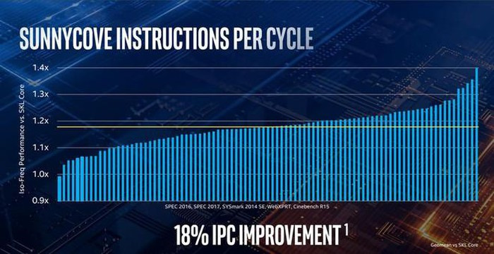 Hiệu suất đơn luồng cũng được tăng với lõi Sunnycove mới, so với dòng Broadwell đã gần 5 năm tuổi.