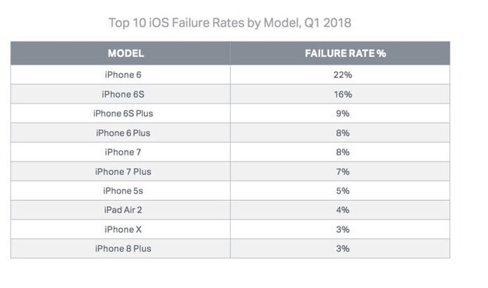 Đối với Apple, mọi thứ đã được cải thiện đáng kể ngoài các vấn đề với iPhone 6. Chẳng hạn, mẫu iPhone 6s có tỷ lệ hỏng hóc là 16%, trong khi iPhone 7 giảm xuống chỉ còn 8%. Cả hai mô hình hiện tại, iPhone 8 và iPhone X, đã thu hẹp tỷ lệ thất bại xuống chỉ còn 3%, điều này có vẻ khá đáng kính.