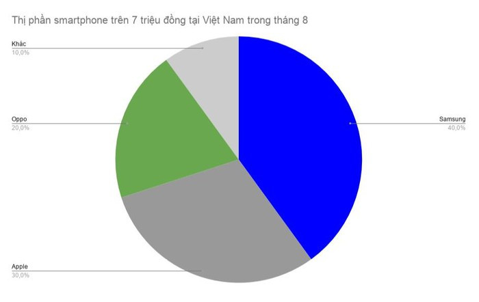 Dù chỉ chiếm 7% thị phần smartphone tại Việt nam trong tháng 8 nhưng Apple chiếm 1/3 phân khúc trên 7 triệu đồng.