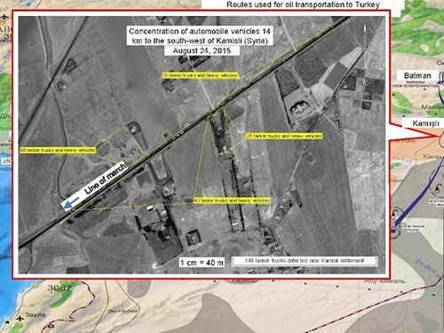Hồi đầu tuần qua, Bộ Quốc phòng Nga cũng vừa công bố các bản đồ và ảnh vệ tinh cho thấy Thổ Nhĩ Kì là khách hàng chính mua dầu từ IS ở Iraq và Syria. Moscow còn chỉ đích danh Tổng thống Thổ Nhĩ Kì và gia đình có liên quan đến việc này.