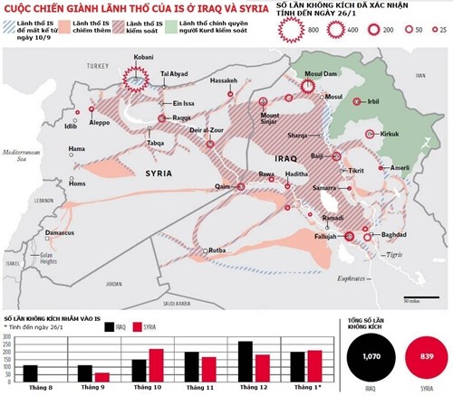 Cùng ngày, nguồn tin từ Bệnh viện al-Qaim cho biết cuộc không kích của liên minh đêm 25/2 gần thị trấn biên giới al-Qaim của Iraq đã tiêu diệt ít nhất 17 tay súng IS và khiến 29 tên khác bị thương.