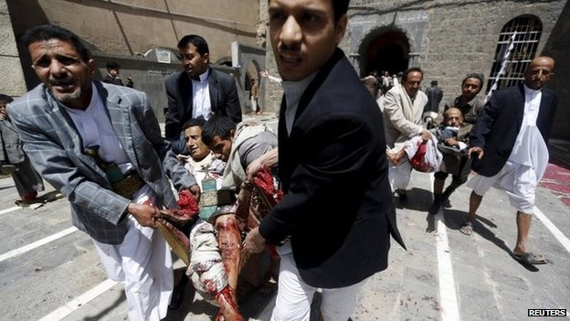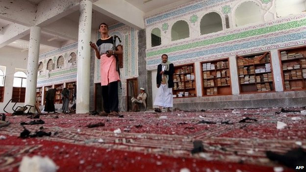 Hai vụ đánh bom xảy ra tại thánh đường Al Badr và Al Hashoosh của nhánh Hồi giáo Shiite thiểu số, Zaidi - vốn ủng hộ phiến quân Houthi.