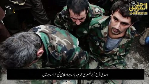 Những thước phim khủng khiếp nổi lên khi phiến quân IS bắt 32 binh sĩ Syria và các tay súng ủng hộ chính phủ ở gần thành phố phía bắc Aleppo, sau khi tái chiếm thành phố này hôm 18-1, theo Đài Quan sát Nhân quyền Anh có trụ sở tại Syria.