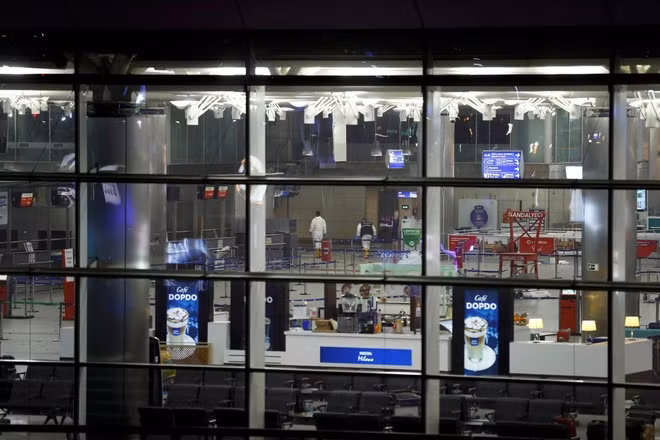 Những thi thể nằm la liệt bên ngoài sân bay tại hiện trường được phong toả.