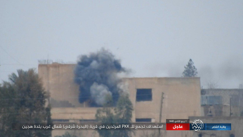 Liên minh quân sự do Mỹ chỉ huy đang hỗ trợ vụ tấn công tại Hajin bằng các chiến dịch không kích vào thị xã này trong 48 giờ qua. Bệnh viện lớn nhất thị xã này cũng bị tấn công hủy diệt một ngày trước. 11 thường dân thiệt mạng.