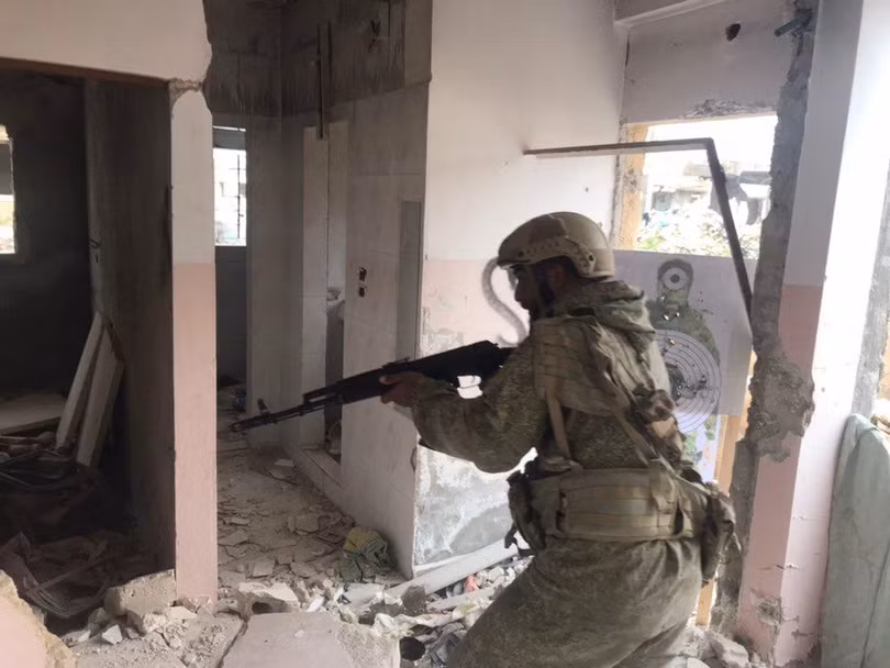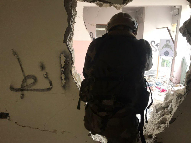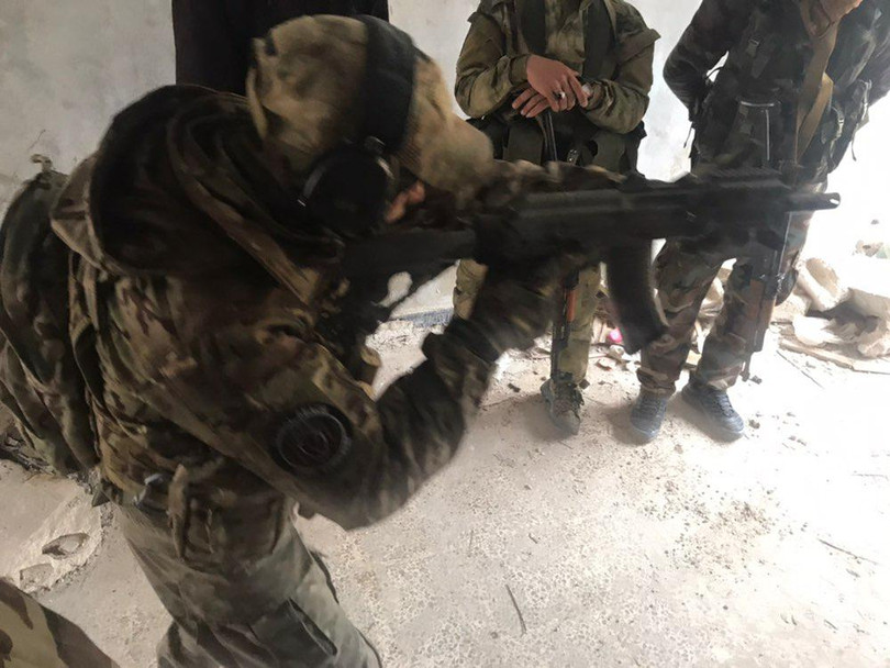 | Các chiến binh Palestine thực hiện các bài tập chiến thuật dưới sự hướng dẫn của Lính đánh thuê Nga. Ảnh South Front |