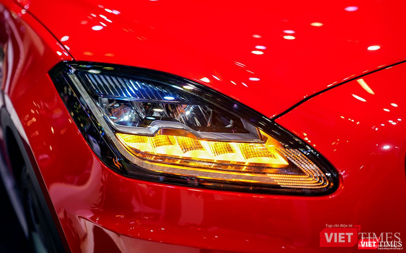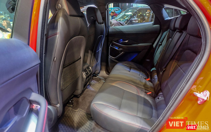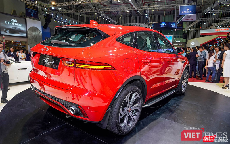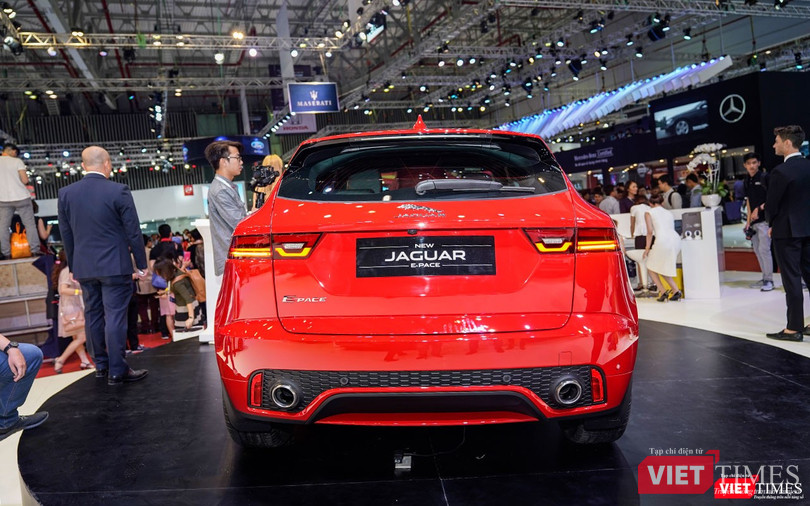 Trong khi ở phía sau, Jaguar E-PACE khó có thể bị nhầm lẫn với người anh F-PACE khi có cụm đèn hậu LED tạo hình vuông thành sắc cạnh hơn. Ốp cản sau với bộ ống xả kép đối xứng trông cũng thể thao hơn so F-PACE.
