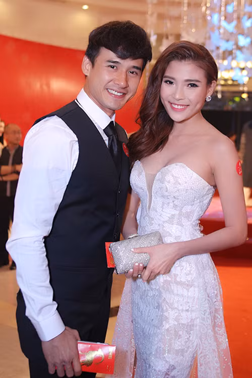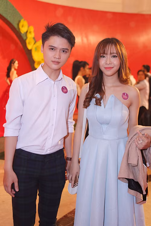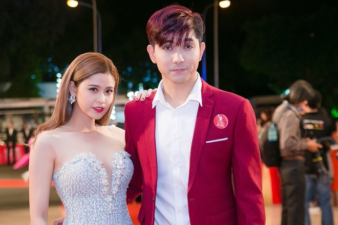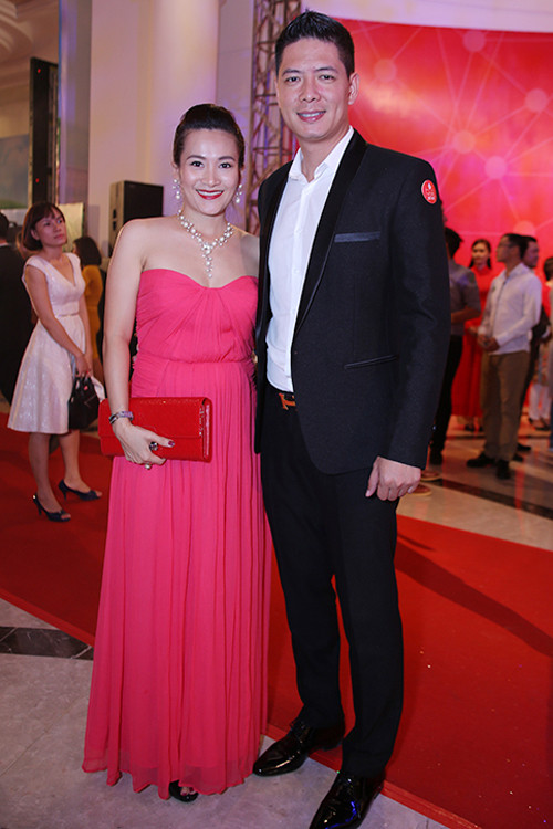 Một số nghệ sĩ khác kết đôi trên thảm đỏ. MC Anh Quân và ca sĩ Tinna Tình.
