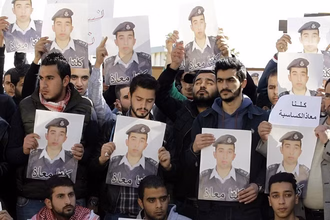 Một người phát ngôn của chính phủ Jordan nói những hành động trả thù sẽ "mạnh mẽ, quyết đoán và gây chấn động". Đại tá Mamdouh al Ameri, người phát ngôn quân đội Jordan, nói: "Người anh hùng Kasasbeh của chúng ta sẽ không đổ máu vô ích. Sự trả thù của Jordan sẽ tương xứng với tai ương mà chúng ta đã phải nhận". Phi công Kasasbeh rơi vào tay IS từ tháng 12/2014, khi anh đang tham gia chiến dịch không kích phiến quân. Tin tức và những phản ứng về số phận của Kasasbeh khiến cả đất nước Jordan chìm trong căng thẳng trong nhiều tuần qua. Nhiều cuộc biểu tình (vốn hiếm khi xảy ra tại Jordan) nổ ra do người dân phản đối cách chính phủ xử lý khủng hoảng con tin. Trong tuần qua, chính phủ Jordan thông báo họ sẵn sàng trả tự do cho Rishawi để bảo toàn tính mạng của con tin Kasasbeh. Jordan yêu cầu IS phải chứng minh phi công của họ vẫn sống an toàn, nhưng IS không phản hồi.