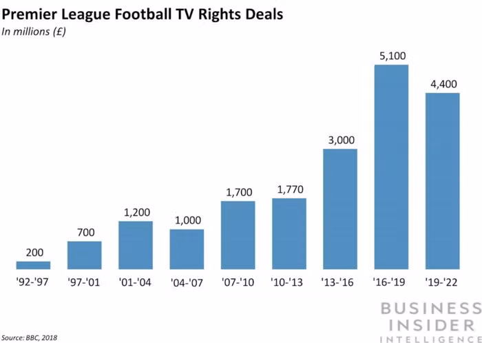 Doanh thu bản quyền Ngoại hạng Anh mùa giải mới 2019/2022 trên toàn cầu là 4,4 tỷ bảng Anh.