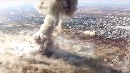 Cột khói hình nấm cao ngút trời sau khi al-Tayyar đánh bom liều chết