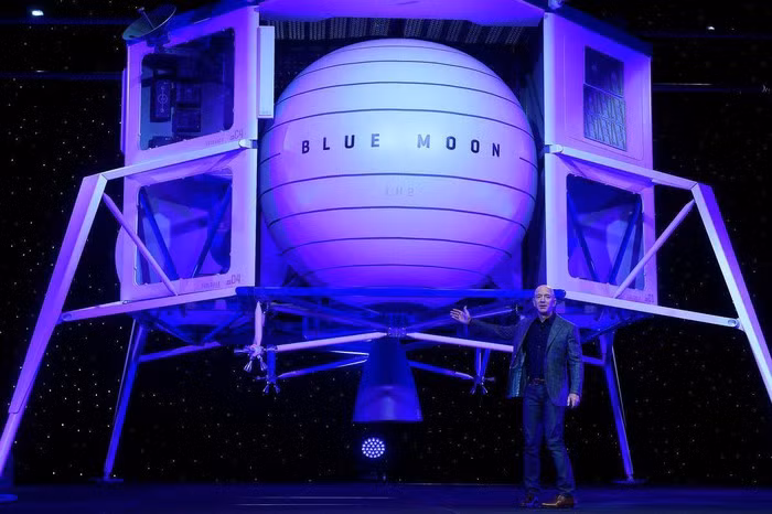 Ngày 9/5, tại Washington DC, nhà sáng lập Amazon Jeff Bezos công bố kế hoạch chinh phục Mặt trăng và giới thiệu chiếc tàu đổ bộ Blue Moon. Theo Reuters, Jeff Bezos mô tả đây là tàu vũ trụ khổng lồ cao hai tầng, có khả năng mang theo 4 tàu du hành nhỏ hơn và đưa chúng lên bề mặt của "chị Hằng".