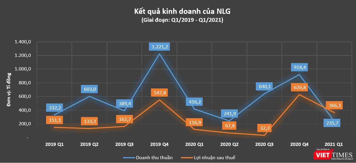 Loại trừ đi các chi phí thuế thu nhập doanh nghiệp, NLG báo lãi ròng 366,3 tỉ đồng Quý 1/2021, cao gấp 3 lần cùng kỳ năm trước và cũng là mức lãi cao nhất so với cùng kỳ 4 năm trở lại đây.