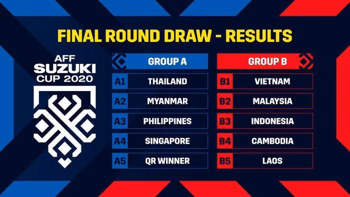 Lá thăm từ đại điện AFF đã đưa Việt Nam vào cùng bảng B với Malaysia, Indonesia, Cambodia và Lào. Trong khi đó, Thái Lan ở bảng A sẽ gặp các đội Myanmar, Philippines, Singapore và đội thắng trong cặp đấu vòng loại giữa Timor Leste và Brunei.