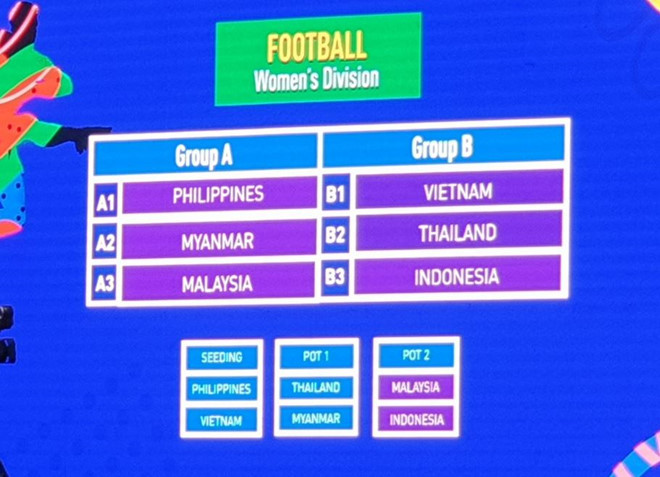 Môn bóng đá nữ SEA Games 2019 có 6 đội góp mặt. Kết quả bốc thăm đưa Việt Nam ở bảng B cùng với Thái Lan và Indonesia. Như vậy cả bóng đá nam và bóng đá nữ chúng ta đều nằm chung bảng với Thái Lan và Indonesia.