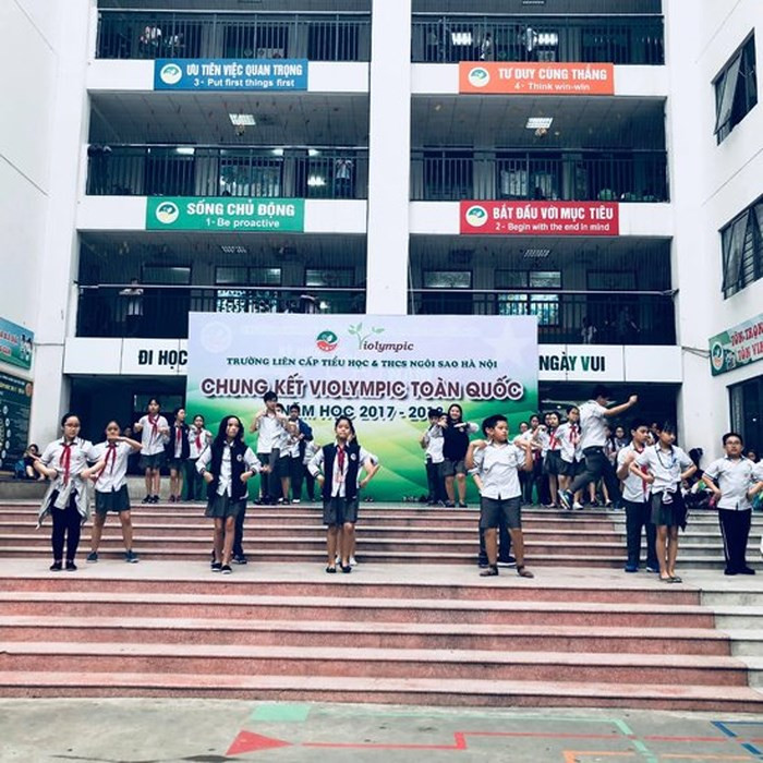 Học sinh trường Tiểu học Ngôi Sao biểu diễn trong buổi khai mạc vòng thi chung kết ViOlympic toàn quốc năm học 2017 – 2018.
