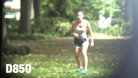 Thử nghiệm khi chụp ở ngoài trời thậm chí cho thấy sự khác biệt rõ rệt hơn. Khi người mẫu chạy thẳng về phía camera, D850 chỉ bắt nét được khoảng 60%. Trái ngược lại, D5 có thể bắt nét chính xác chuyển động lên tới 80-90% khung hình.