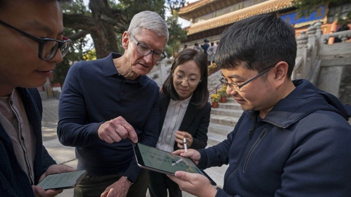Tim Cook cho rằng sự suy thoái kinh tế tại Trung Quốc đã ảnh hưởng đến doanh số iPhone mới. Ảnh: Xinhua.