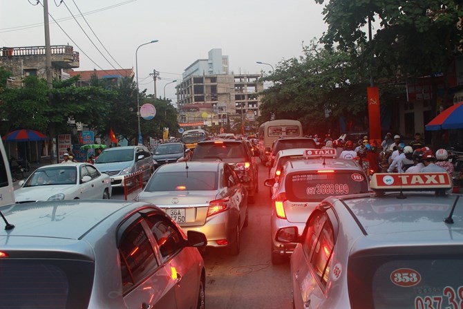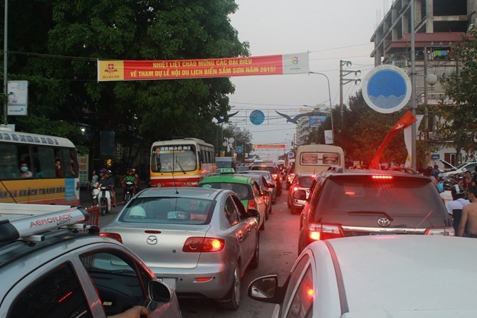 Ngay từ các ngày 28 - 29/4, khách đã "kìn kìn" đổ về Sầm Sơn và đến chiều 30/4 thì dấu hiệu quá tải bắt đầu xuất hiện. Từ ngã tư đường tránh thành phố Thanh Hóa giao với trục đường dẫn ra thị xã Sầm Sơn, tình trạng tắc đường đã diễn ra và càng gần đến bờ biển, mật độ xe cộ càng ken chặt. Hàng nghìn ô tô nhích từng mét trên một đoạn đường dài gần 10 cây số…