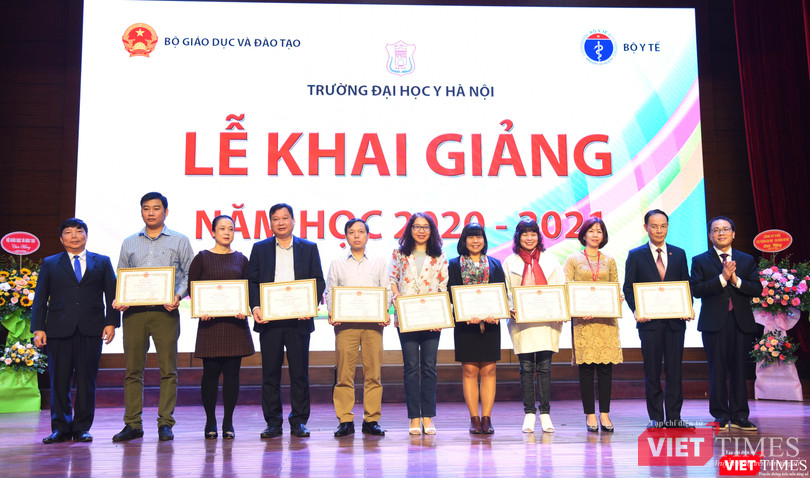 Hiệu trưởng Trường Đại học Y Hà Nội và đại diện Bộ Y tế đã trao Bằng khen của Bộ Y tế cho các thầy, cô giáo có thành tích xuất sắc trong năm học vừa qua.