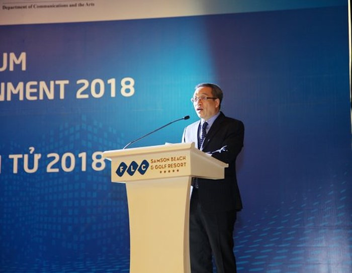 Thứ trưởng Bộ TT&TT Phan Tâm phát biểu khai mạc hội nghị quốc tế về Đô thị thông minh và Chính phủ điện tử 2018 (Ảnh: Lan Phương)