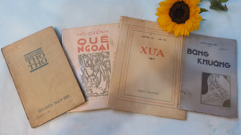 Triển lãm trưng bày hơn 20 tác phẩm thơ tiền chiến của các tác giả như: Tập thơ “Lửa Thiêng” của Huy Cận xuất bản lần đầu năm 1940, tập thơ “Thơ thơ” của Xuân Diệu xuất bản lần đầu năm 1938, Tập thơ đầu tay “Điêu Tàn” của Chế Lan Viên xuất bản lần đầu năm 1938 với thủ bút và chữ ký của tác giả và đặc biệt là tập thơ “Quê ngoại” của Hồ Dzếnh xuất bản lần đầu năm 1943 là một trong những ấn phẩm thượng hạng hiếm hoi còn sót lại cùng với các tập thơ của các nhà thơ như: Tản Đà, Vũ Hoàng Chương, Anh Thơ, Lưu Trọng Lư…