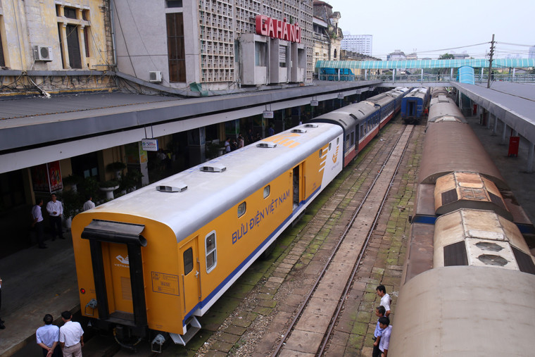 Toa xe tàu hỏa mang thương hiệu Bưu điện Việt Nam